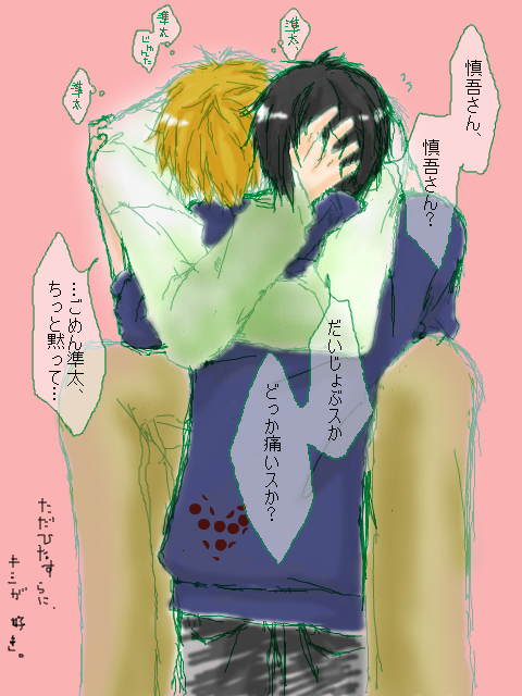 ピスメ鐵、めでたく新刊でましたね。中身はさすが全くめでたくないんですが。おニューの鉄っちゃんのめんどくさそうな感じがどうにも準さんぽくて萌えたので勢い余ってパロディです。小姓準さん、美味しいお茶は一切入れられなさそうですが、野外での多人数戦では凄い強そうですね。和さんは局長立ち位置的には首刎ねられててもいいかなと思ったんですが、何かこっちの方がおいしそうでした。独りぼっちの慎吾さんは親衛隊の皆さんに愛込めてお出迎えされていればいいと思います。
